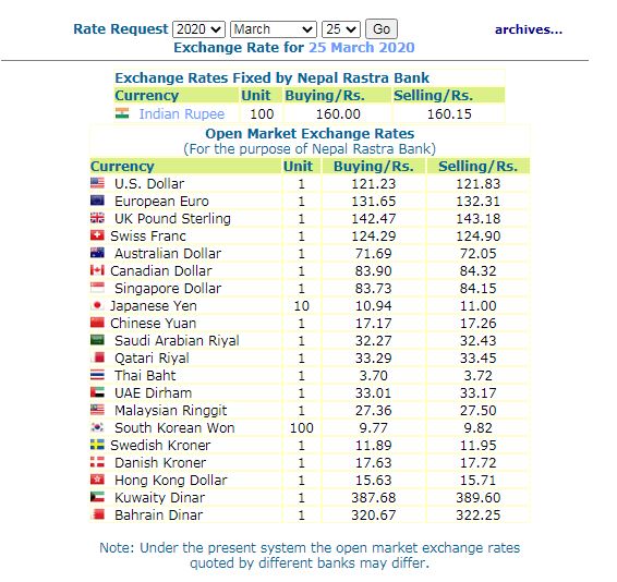 नेपाल राष्ट्र बैंकले तोकेको सबै देशको विनिमयदर तलको तालिकामा हेर्नुहोस्-