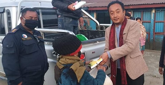 राईले प्रतिव्यक्ति पाँच किलो चामल, आधा लिटर तेल, एक किलो दाल, एक किलो नुन, दुईवटा चाउचाउ र एउटा साबुन प्रदान गरेका हुन् । छथर जोरपाटी गाउँपालिकाका अन्य विपन्न परिवारको खोजी गरी राहत वितरण गर्ने तयारीमा रहेको उनले बताए ।