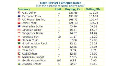 नेपाल राष्ट्र बैंकले तोकेको सबै देशको विनिमयदर तलको तालिकामा हेर्नुहोस्-