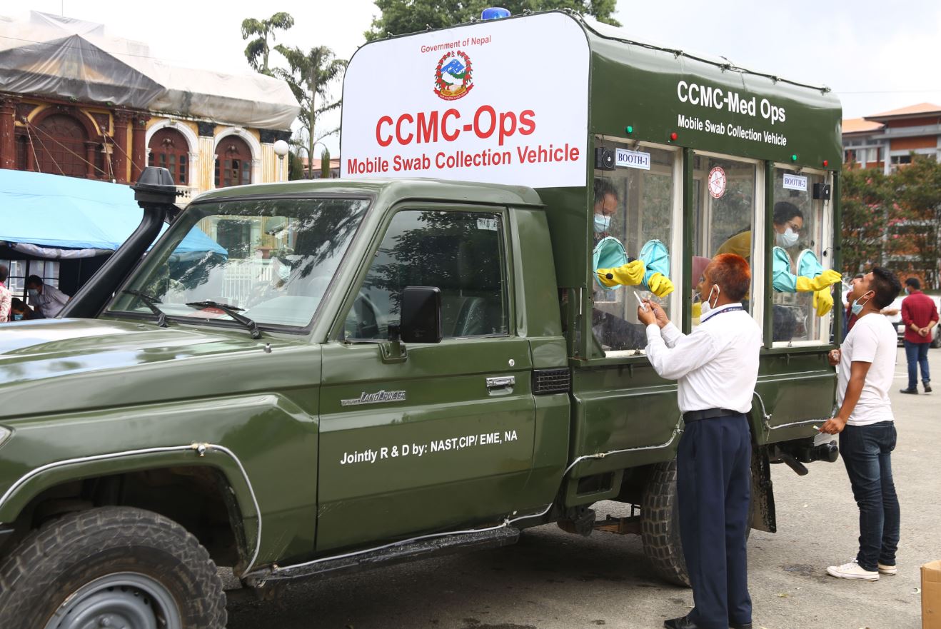 नेपाली सेनाको सहयोगमा नेपाल विज्ञान तथा प्रविधि प्रज्ञा प्रतिष्ठान (नाष्ट) ले स्वाब सङ्कलनका लागि पहिलो पटक प्रविधियुक्त यस्तो गाडी प्रयोगमा ल्याएको हो । विश्वभर फैलिरहेको कोभिड विषाणुको सङ्क्रमणबाट चिकित्सकलाई जोगाउन नाष्टले गाडीभित्र यस्तो प्रविधि जडान गरेको हो ।
