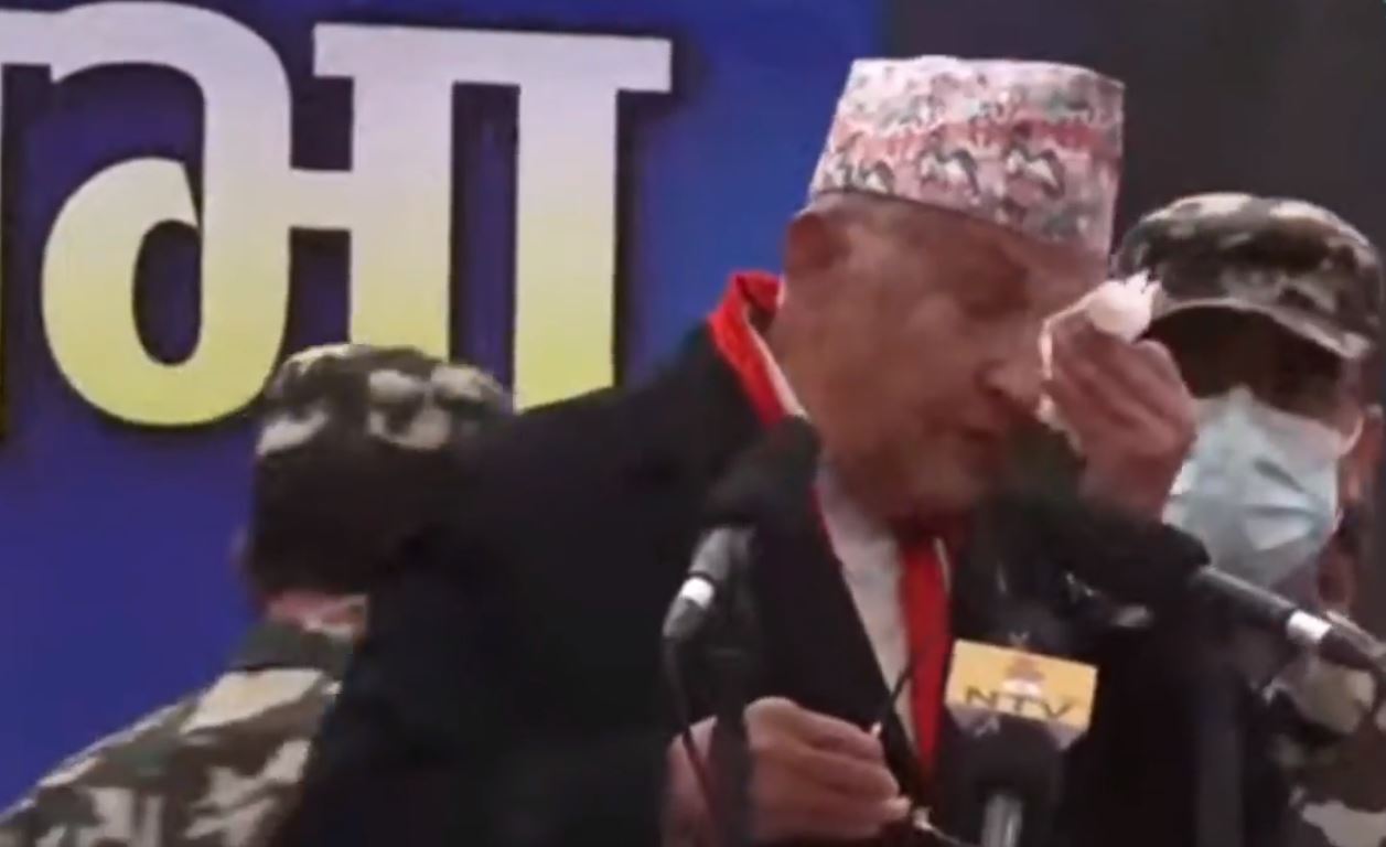 प्रधानमन्त्रीले भाषण गर्दैगर्दा उनको समर्थनमा सहभागीहरुले केहीबेर हुटिङ गरेका थिए । हुटिङलाई हात हल्लाएर समर्थन जनाएका प्रधानमन्त्रीले पानी पिए । त्यसपछि कालो चश्मा खोलेर आँशु पुछे । प्रधानमन्त्री ओलीले चिसोका कारण आँशु आएको बताएका छन् । आँशु पुछ्नुअघि उनले माइकबाट सुनिने गरी भनेका थिए, ‘चिसोले आँखामा नि आँशु आयो ।’