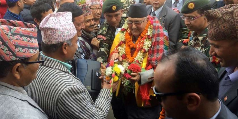 प्रधानमन्त्री केपी शर्मा ओली क्यान्सर अस्पताल र विपन्न आवासगृहलगायत उद्घाटन गर्न आज झापा आइपुग्नुभएको छ । भद्रपुर विमानस्थलमा प्रधानमन्त्री ओलीलाई प्रदेश नं १ का प्रदेश प्रमुख सोमनाथ अधिकारी ‘प्यासी’, वाग्मती प्रदेशका प्रदेश प्रमुख विष्णुप्रसाद प्रसाईँ, प्रदेश नं १ का मुख्यमन्त्री शेरधन राई र प्रदेशका आन्तरिक मामिला तथा कानूनमन्त्री हिक्मतकुमार कार्कीले स्वागत गर्नुभयो ।