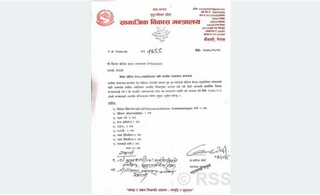 सुदूरपश्चिम प्रदेशको सामाजिक विकास मन्त्रालयले त्यहाँ आवश्यक जनशक्ति करारमा भर्ना गर्ने भएको हो । प्रदेशको सामाजिक विकास मन्त्रालयको मन्त्रीस्तरीय निर्णयले २० जना स्वास्थ्यकर्मीलाई त्यहाँ खटाउने निर्णय भएको मन्त्रालयका स्वास्थ्य शाखा प्रमुख डा. जगदीश जोशीले जानकारी दिनुभयो । डा. जोशीका अनुसार २० जना जनशक्ति व्यवस्थापनका लागि बजेट पनि मन्त्रालयले व्यवस्थापन गर्नेछ ।