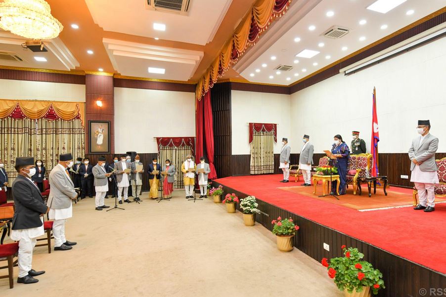 शपथ लिनेमा गृहमा खगराज अधिकारी, उद्योग, वाणिज्य तथा आपूर्तिमा राजकिशोर यादव, सञ्चार तथा सूचना प्रविधिमा नैनकला थापा, कृषि तथा पशुपन्छी विकासमा ज्वालाकुमारी साह, वन तथा वातावरणमा नारदमुनि राना, सङ्घीय मामिला तथा सामान्य प्रशासनमा गणेशकुमार पहाडी र प्रधानमन्त्री तथा मन्त्रिपरिषद्को कार्यालय हेर्ने गरी मोहन बानियाँ मन्त्री हुनुहुन्छ ।