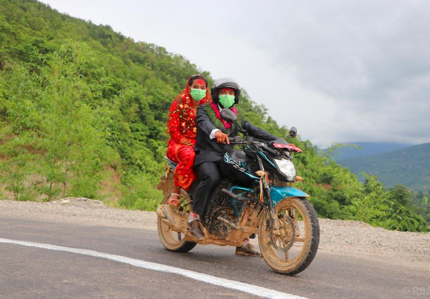 सङ्खुवासभाको खाँदबारी नगरपालिका –८ का सन्तोष श्रेष्ठले निषेधाज्ञाका बीच बेहुलीलाई आफैले मोटरसाइकलमा चढाएर घरमा भित्र्याएका छन् । धर्मदेवीको आँखीभूईँबाट ती बेहुला–बेहुली मोटरसाइकलमा खाँदबारी फर्किएका हुन् । बेहुला सन्तोषले धर्मदेवी नगरपालिका –७ की चन्द्रिका श्रेष्ठसँग विवाह गर्नुभएको हो । विवाहमा अन्य कुनै तडकभडक देखिएन ।