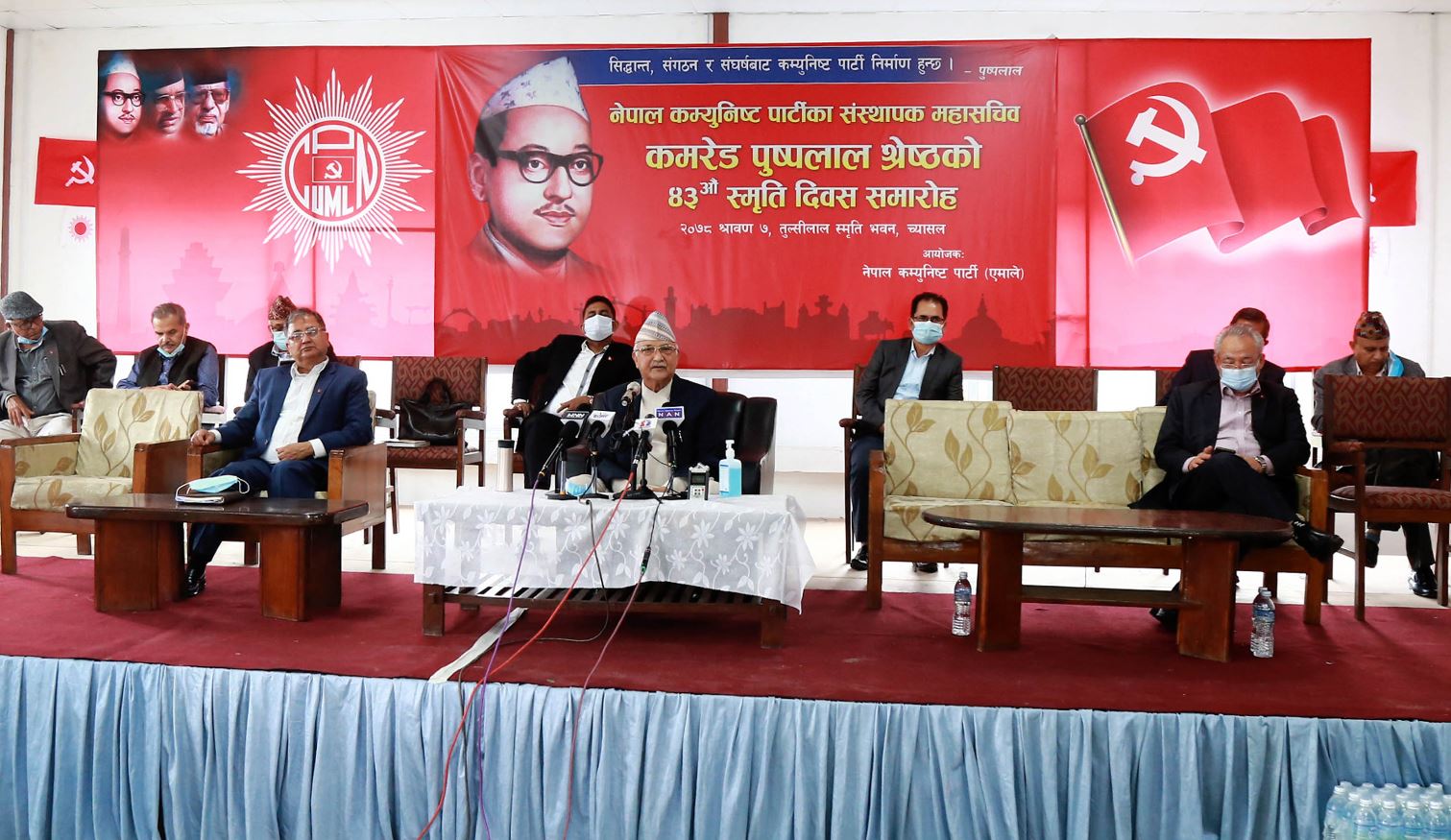 एमाले स्थायी कमिटी सदस्य रामबहादुर थापाले पार्टी एकता र सुदृढीकरणको अभियानमा जानुपर्ने जरुरी भएकासमेत बताउनुभयो । नेकपाका संस्थापक महासचिव पुष्पलालको जन्म विसं १९८० मा रामेछापमा भएको थियो भने २०३५ साल साउन ७ गते निधन भएको थियो । उहाँले २००६ सालमा पहिलो पटक नेपालमा नेकपाको स्थापना गर्नुभएको थियो ।