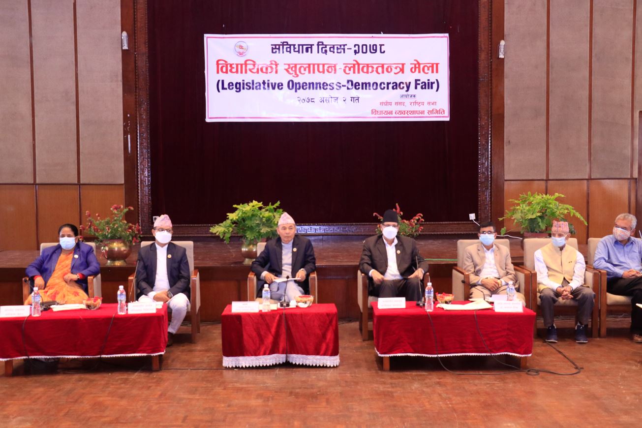 राष्ट्रियसभाका उपाध्यक्ष शशिकला दाहालले लामो सङ्घर्ष र ठूलो बलिदानीको उपलब्धिका रुपमा संविधानसभाबाट जारी भएको संविधानका उल्लेखित मौलिक अधिकार लगायतका विषयवस्तु कार्यान्वयन गरी जनतालाई परिवर्तनको अनुभूति प्रदान गर्न सबैको इमान्दार प्रयासको खाँचो आँैल्याउनुभयो ।विधायन व्यवस्थापन समितिका सभापति परशुराम मेघी गुरुङले लोकतान्त्रिक मूल्यमान्यतालाई राजनीतिक दल, नागरिक समाज र भ्रातृ सङ्गठनलाई एक ठाउँमा भेला भएर जनता र मुलुकको हित प्रवद्र्धनका लागि अनुभव साटासाट गर्न सकियोस् भन्ने हेतुले संविधान दिवसका अवसरमा लोकतन्त्र मेला आयोजना गरिएको जानकारी दिनुभयो ।