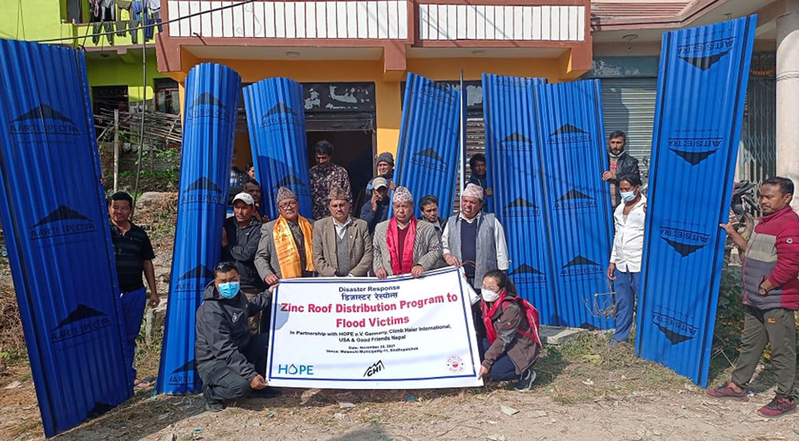 मेलम्ची–इन्द्रावती बाढीबाट पूर्णरुपमा घर क्षति भएका मेलम्ची नगरपालिका वडा नं ११ का ४० परिवारलाई आज १२० बन्डल जस्तापाता प्रदान गरिएको छ । दोलखाको जिरी नगरपालिकामा रहेको असल मित्र नेपाल नामक संस्थाले जस्तापाता उपलब्ध गराएको हो । सो संस्थाले सिएचआइ र होप नामक संस्थाको आर्थिक सहयोगमा प्रतिघर तीन बन्डल रङ्गीन जस्तापाता बाढी प्रभावितलाई वितरण गरेको हो ।